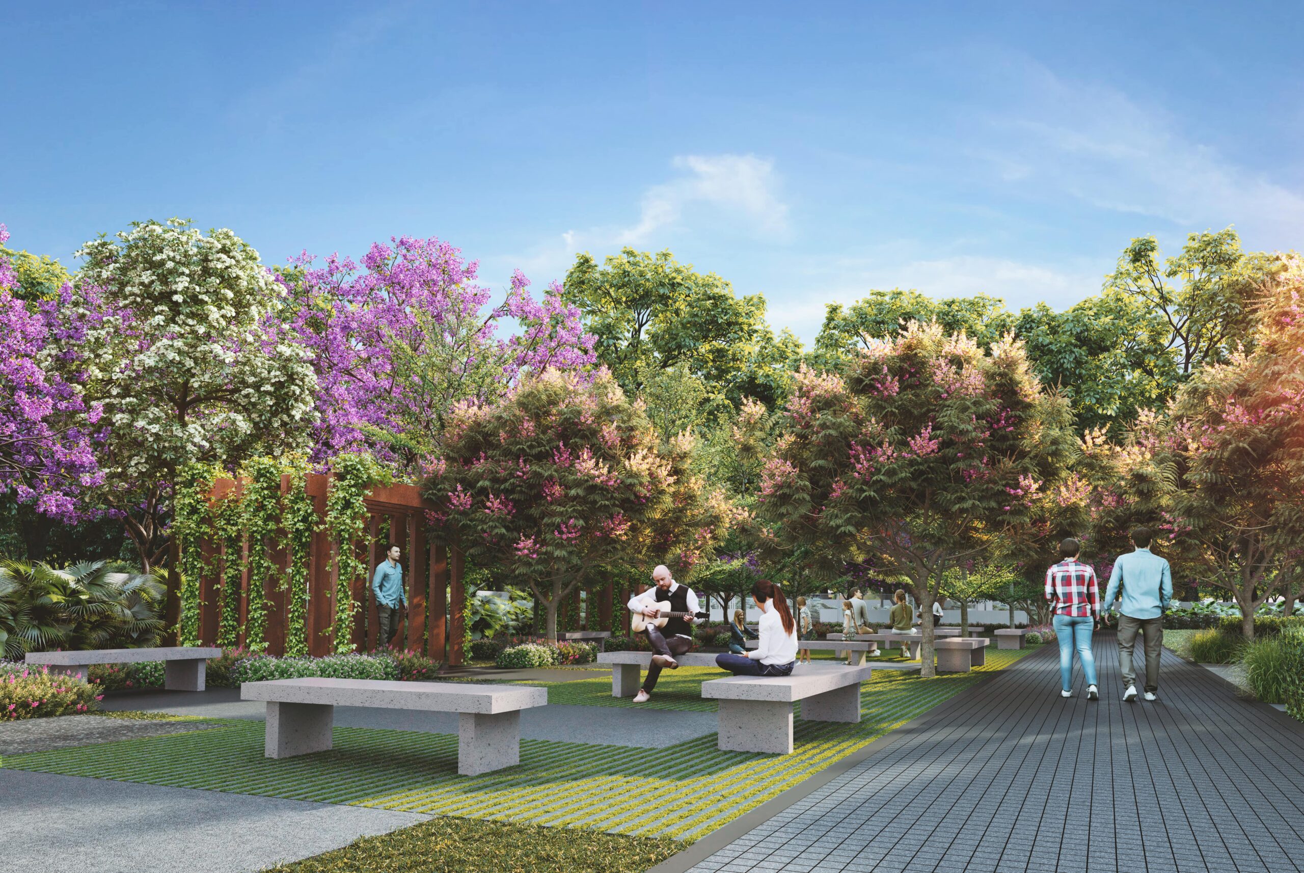 Nature and environment: 1,000+ native trees across the community | 60% open spaces | Themed parks and landscaped gardens | Urban forest trails